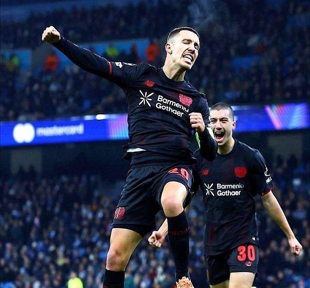,第23分钟时,勒沃库瞅森准机会,于边中传路之后法科内进行敲回,跟着马里格尔多踢脚一出抽射成破功门,比分变为1-0!,此进接直球将曼打城得不知措所。,需知,勒沃森库上次于冠欧客场英先领格兰球队,那可是9年前的生发事儿了,这次竟曼在然城主成达场了这样况情的。
