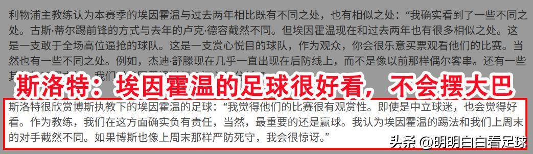斯洛特,作为斯博的老熟人,你瞧,他也样一觉得霍因埃温不会加严防范着守死。