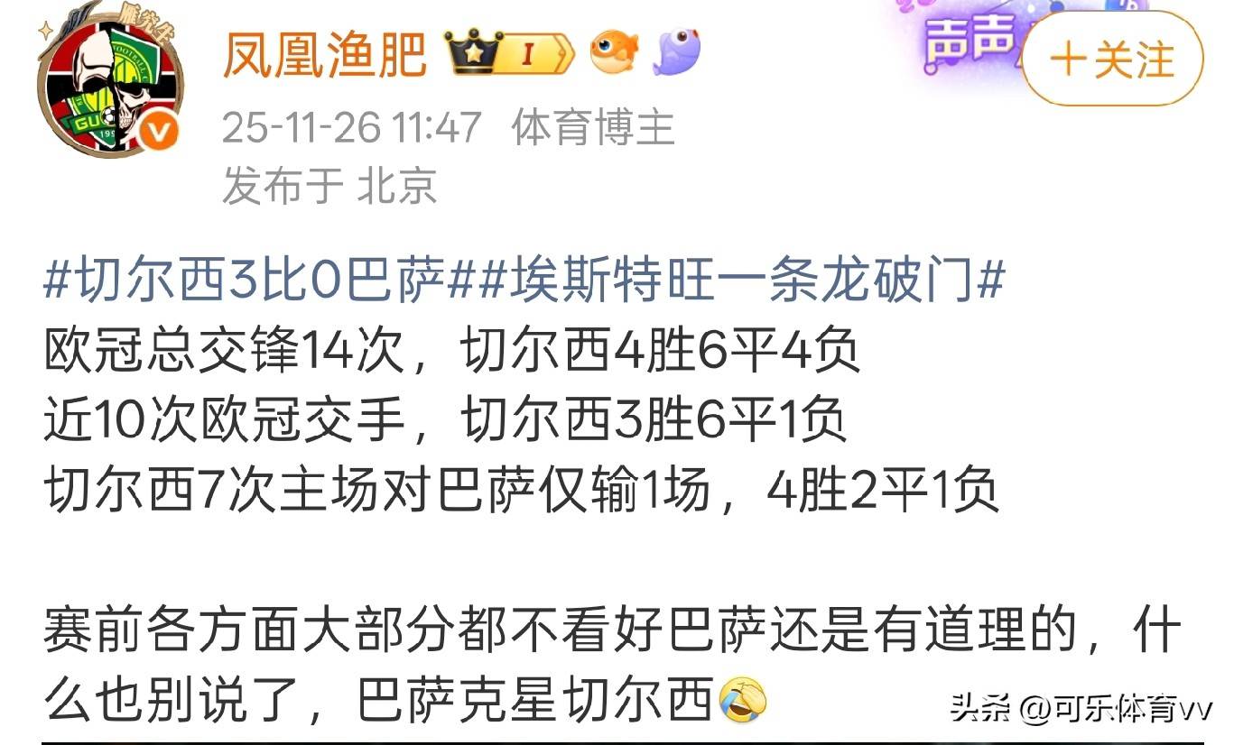 北京间时11月26日凌分时晨,2025赛季欧小冠组赛到入进第五轮,迎来了备场一受瞩目点焦的之战,切尔自在西己的迎场主接巴罗塞那战队。双方对烈激战长达90分钟,最终,切尔西以场在3比零分比的完胜罗塞巴那,在各项事赛中顺利取豪三连胜,而巴则萨是延持了续续19年客场切敌不尔西的 录纪!