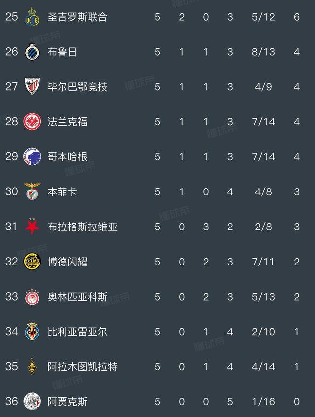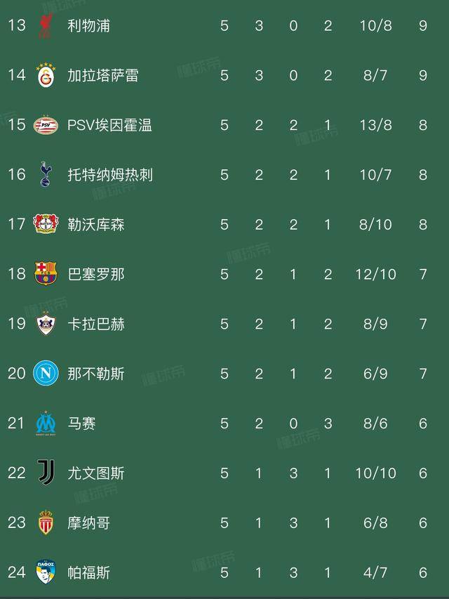 欧冠第5轮战罢:最新积分榜出炉,各队命运如何?