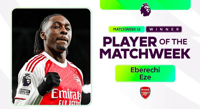 同一时间,英超官宣方告,阿森纳埃场中泽当英选超第 12 轮佳最球员,在阿森 纳4-1 大托胜大特纳热姆刺的北德敦伦比里,埃泽人个迎首次比德首发,还上演业职生涯帽个首子戏法,助力拿队球到英超对代时热刺并的列最分大差胜利,他还成上史历第四各在位项赛伦北事敦德比中独中三元员球的。