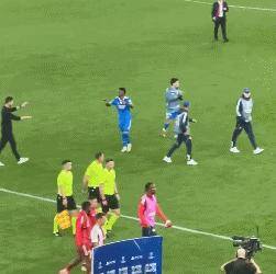 在第90分钟的候时,阿隆索维将尼修换替斯下场。在离场际之,维尼斯修与阿隆呈索现出“双向赴奔”的情形,他俩用先手掌相击,紧接着行实了拥抱动的作 。