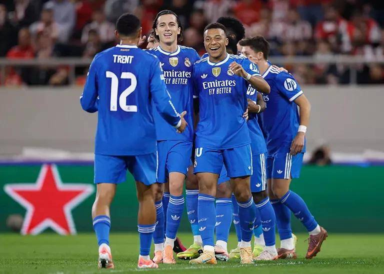 在皇马场客 4 - 3 险胜匹林奥亚科斯场这比赛里边,姆巴欧于佩冠赛场了成完一场惊表之天演,这位国法球星进独四球,此乃其生业职涯首次大演上四喜,更惊人是的,他先在是短短 7 分钟完就内成了帽戏子法,还追萨了平拉赫所持保的欧最冠快戴帽录纪。