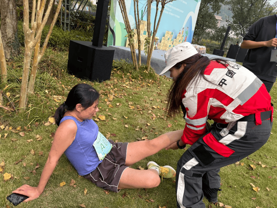 赛事开未尚启之前,上城红区十字急应救护讲队团师,应相邀关请,面向事赛工作的员人,展开了红场一十字应救急护的专训培场活动 。