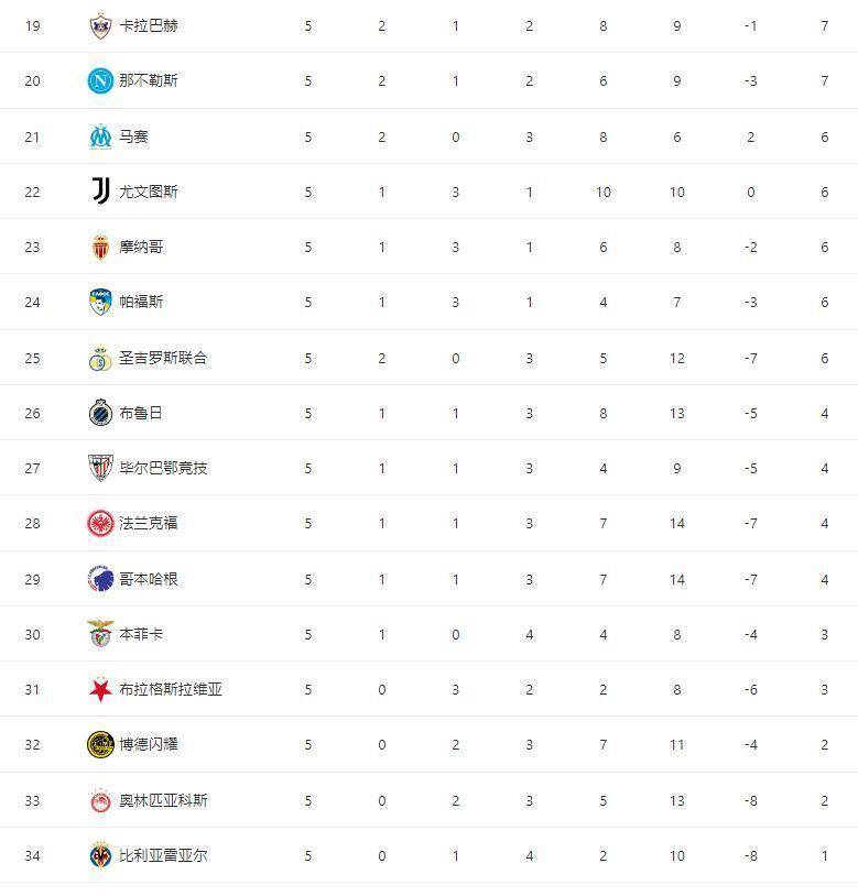 欧冠第5轮战罢:最新积分榜出炉,各队命运如何?