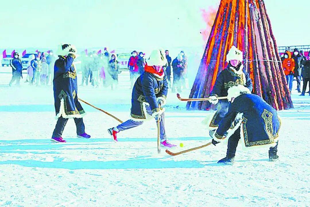 雪地棍曲球比赛。(来源:呼伦贝日尔报)