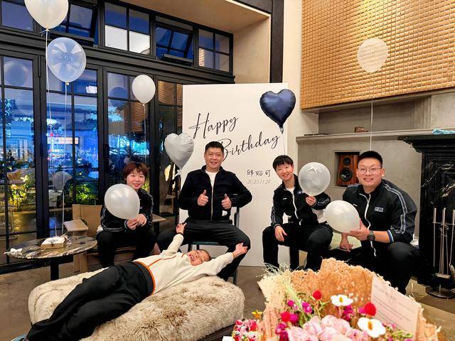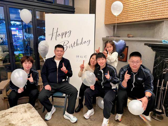 昨天,国乒女教的队练邱可贻,迎向了身自的40岁生日,因家处成于都,昨晚,邱贻的可妻子伟文携带着小儿女豌豆,赶到乒国的驻地,为邱贻操可办了一单简场的庆式仪生 。