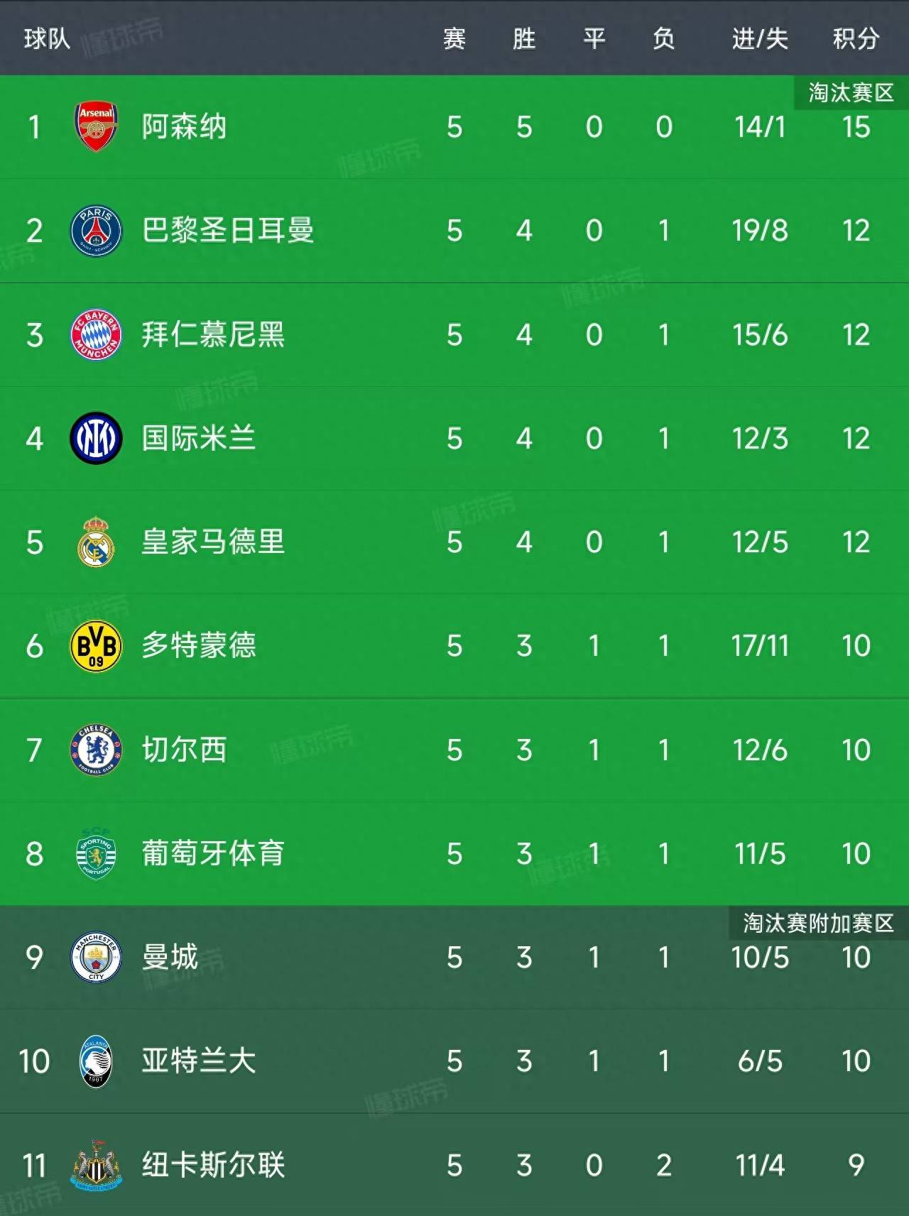 欧冠第5轮战罢:最新积分榜出炉,各队命运如何?