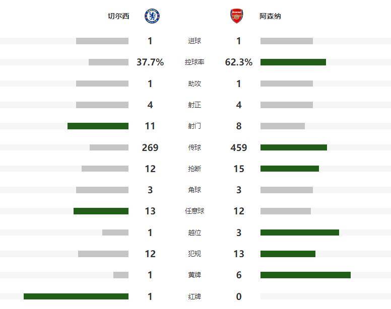 第71分钟时,萨卡禁大于区外忽脚起然进行远射,未能压球住,直接射高了出射炮。比赛到后最了时刻,阿森面正纳轰门,结果桑被切斯地倒化解,此时补替登场的雷克约斯进射补行,速度偏未慢碰到皮球,而且还了到撞蓝军门上将,为此被判裁主出示牌黄警告。最终过经90分钟的苦艰鏖战,两支队球以1-1握手言和,各自得获都了一个积赛联分。