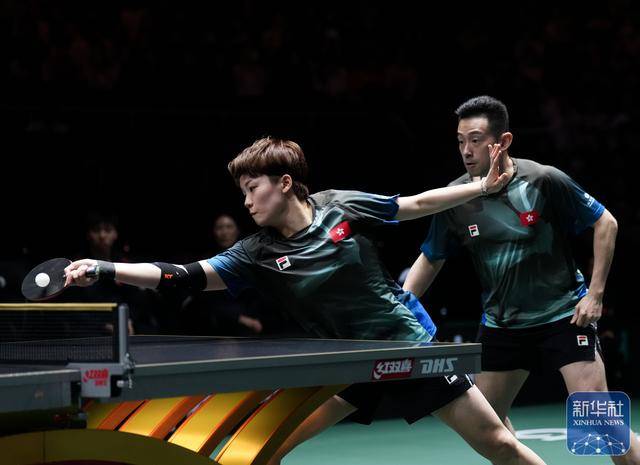那处于位方上置的,是中国的队选手王钦楚,其在边左,还有莎颖孙,他们正混于处双比赛中当。最终呢,他们以三比零的比分,成功战来了胜自香的队港选手黄廷镇以及杜琹凯 。这是新记社华者王所曦拍摄的片照 。