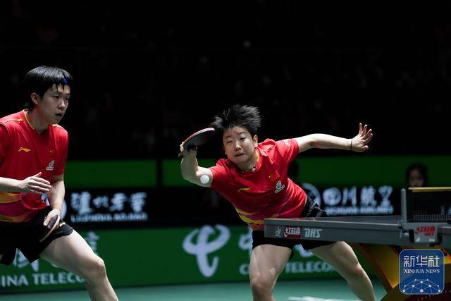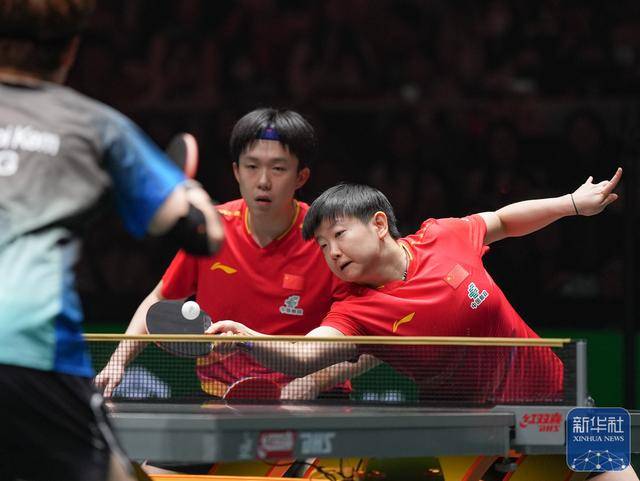 在上边,中国队选的手王以钦楚及孙颖莎,也就边右是的那两位,处于混比双赛当中。最终呢,他们三以比零分比的,战胜了香自来港队的手选黄镇还廷有杜凯琹。新华社者记王曦摄拍所。