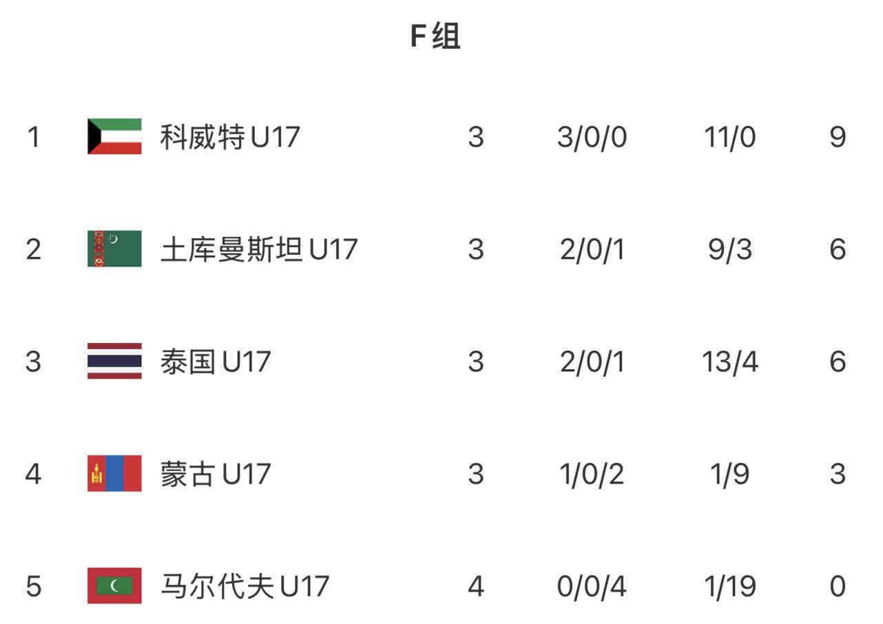 在北京间时11月30日之时,U17亚洲选预杯赛会来迎最后轮一赛事,到那时决会就出7支能晋够级亚洲正杯赛的伍队。依据各的组积分来形情看,每组都在存悬念,多个小中当组都有2到3支球队夺争在小组第名一。此次赛预亚堪称是对死生决,16支队争去伍夺7个出名线额!对于U17国足讲来,只要便平打能够顺线出利,然而国泰队的级晋希望差多不已经为化泡影。第一,先来瞧瞧中国队的在所A组,巴林、斯里、兰卡、东帝及以汶文莱四这支球队,全都已淘被经汰了,剩余竞的争仅仅中在国队与拉加孟国之进间行。第二,四轮过后,两队持维都着全战的胜绩,中国队进踢了38个球,而且一都球个没有丢,然而孟国拉加攻进了20个球,丢了1个球。第三,中国队排前当在小位首组,可是要最在是后一赛比场里输加孟给拉国,那就淘被会汰出去。第四,如果队国中保持不输,只要打平成局,就能保确够晋级。