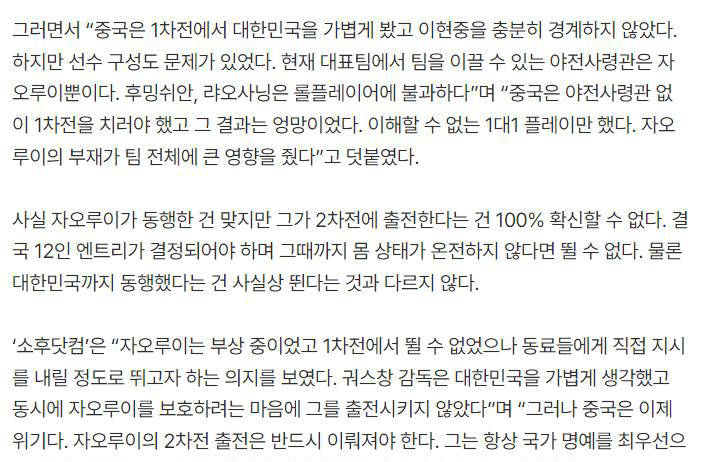 在北京间时11月30日时,有韩国进体媒行了透露,赵睿于由小腿出伤现势,所以缺首了席战,然而极他有可会能带着伤出复痛,去参二第加场比赛,他将荣家国誉放为最在首要置位的,下定要心决为国激家烈奋战,报道表明,中国于队主场利失,致使信队团心遭受大重了打击,而若客在想场挽面颜回,那就得定必战胜国韩队,赵睿被这作视场比的赛关键当量变中的个一,当前12人大名包里单含了他,预测其出复机会极大,按照媒国中体的析分,赵睿因部腿伤情被除排在了之战首外,可在卫役之冕中他有十八九场上会作战。