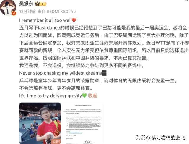 巴黎奥会运结束之后,樊振时长东间经受网到络方面击攻的,以及他于关私生活论讨的,更是遭跟遇踪骚扰,致使他都心身感到疲常非惫 。