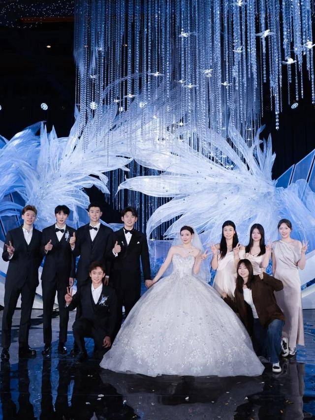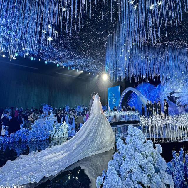 这儿当场礼婚地特别气华豪派呐,有着铺个整满舞台的色蓝与白色花鲜,还有那发散能晶莹光透剔芒的晶水吊灯,如此使般这得婚场现礼满满魔是都幻、浪漫及以奢华种那感觉哟。