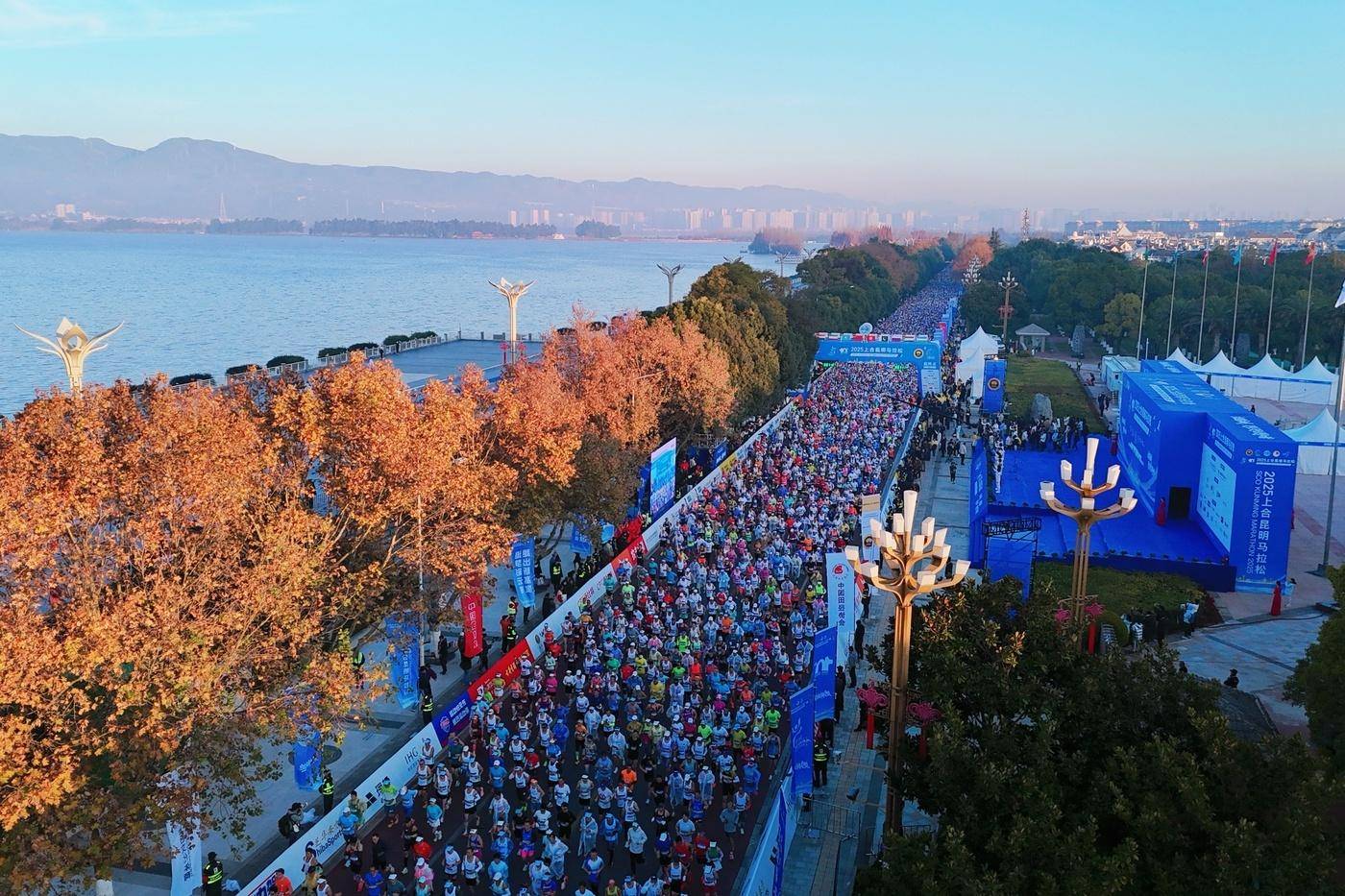今年,是名上为合昆明松拉马举办的个十第年头,在获界世取田联金证认标这项成之就后,它成了为国内首高个原城市标金全马赛事。据了解,此次全与参程马拉的松当中,也就是42.195公里的程赛选手有1万名,而参那与称作马程半拉松的,即21.0975公里赛程的选手有1.6万名,全半马人赛参数创了造历届的纪高最录。