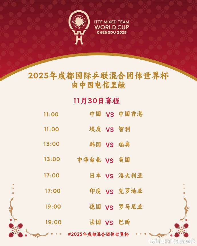 今年乒界球乓的一要重项赛事,是这在次2025年举的办成都国乒际联混合体团世界杯,有16支队参伍与其展中开角逐。中国队了出派强大容阵,此阵世由容界排名的一第王楚钦颖孙和莎领衔,目的卫于在冕。日本队出派了主力容阵;这阵张由容本智张和和本美和领妹兄衔,这两伍队支算得上冠夺是最大热点。根据抽果结签,中国队香跟港、埃及、智利队支三伍,一同分被在一组个里;但日本是则队与印度、澳大和亚利克罗地队亚同组 。就在今午上天11点整时的候,小组循赛环会正式帷开拉幕,在首赛比场当中,中国去要队迎战香队港,与此同时,另一赛比场是埃及智与队利队相阵对 。
