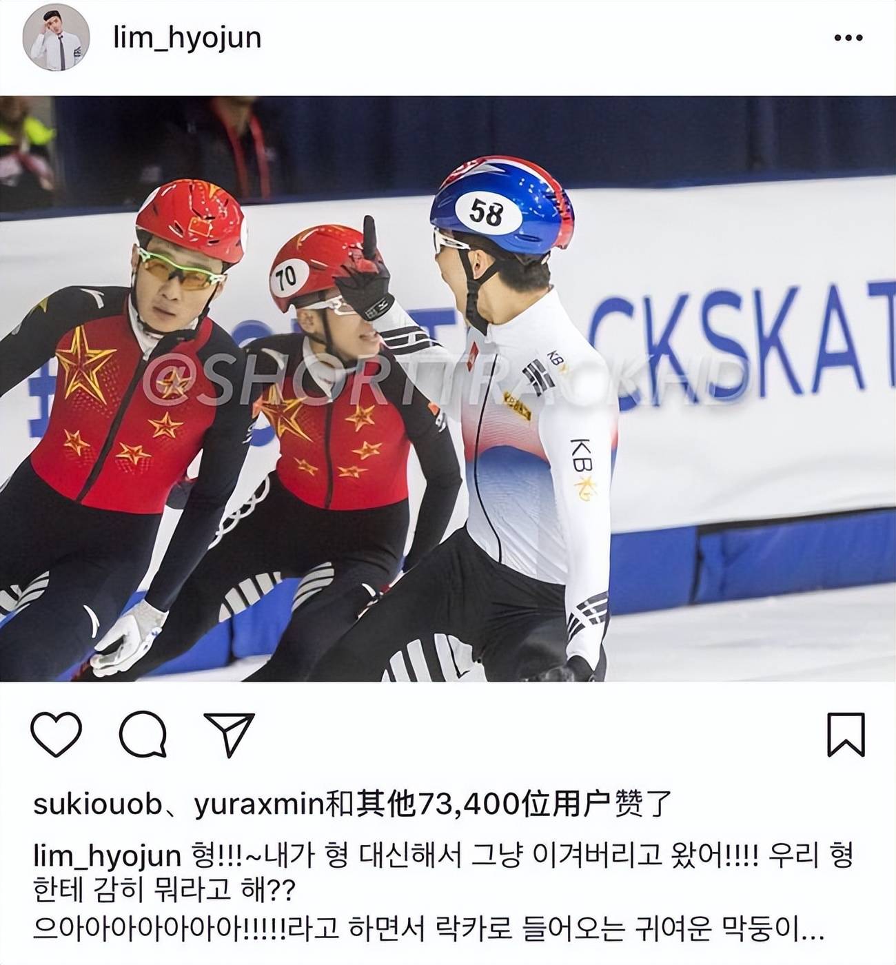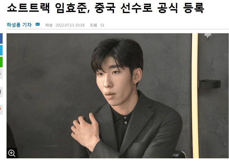 消息一出,林孝成埈了短道滑速队的边人缘物。
