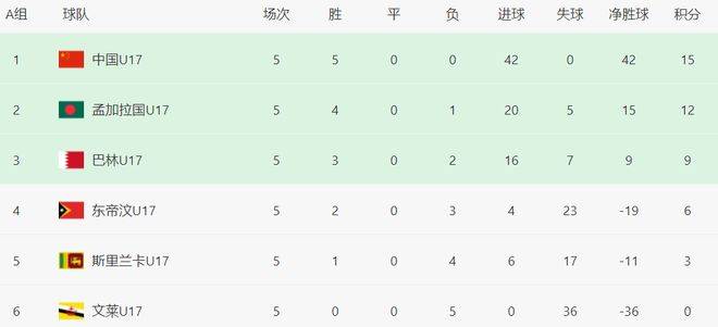 中国队U17,在U17亚洲预杯选赛末的尾一组小轮赛当中,对战加孟拉国U队-17。从前,两队前于四场里赛比,都获了取全胜绩成的。只因唯组小有排名位首的球方队能够级晋,故而场这比赛变了成决定哪队支一伍可以出功成线的所键关在。鉴于国中队具备好较的净胜势优球,所以要只本场打赛比成平局,便能够晋保确级。最终,中国队以4比0的比分,轻松战对胜方,以全成的胜绩,强势现实晋级。