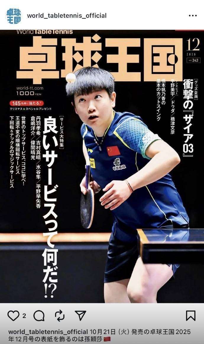 孙颖莎登日本杂志封面引热议:日媒惊叹,她的发球‘重新定义了乒乓球’
