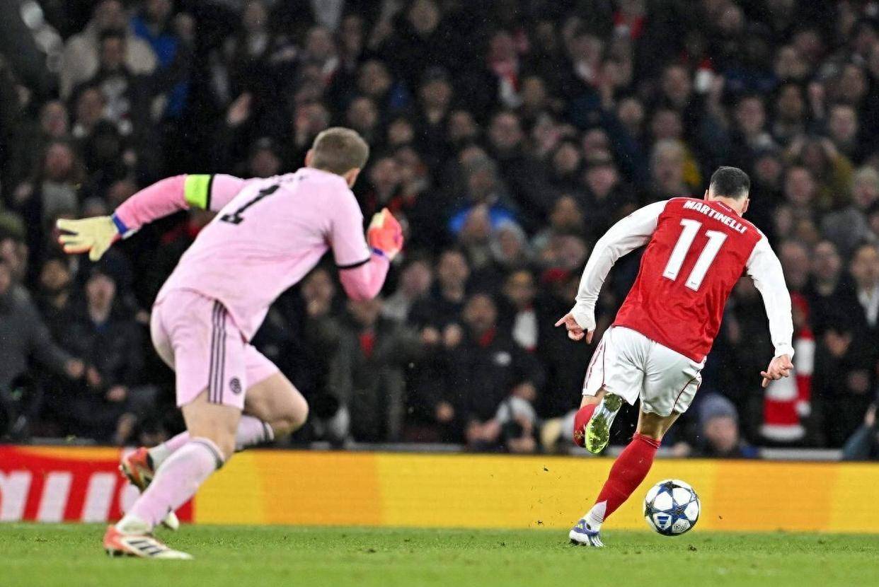 诺伊尔狼狈失误,成全枪手狂欢!马丁内利滑跪引爆酋长球场,阿尔特塔振臂高呼