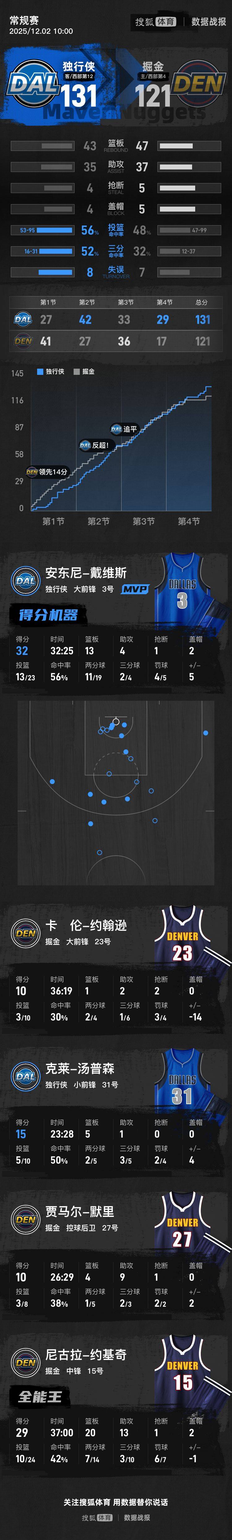戴维斯32+13强势爆发,约基奇29+20+13空砍!独行侠力克掘金获关键胜利