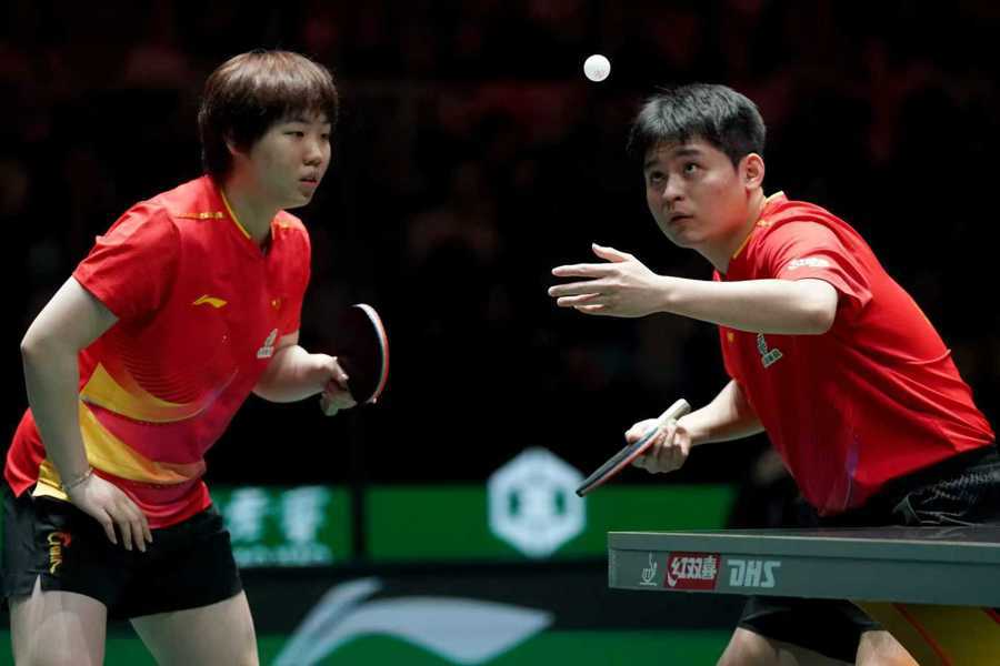 中国队王手选楚钦、孙颖莎,在2025年11月30日于川四成都的办举国际混联乒合团界世体杯第阶一段A组小组赛现场混的双赛里事,以3比0的比胜战分了香港手选队黄镇廷、杜凯琹,当日总队全比分8比1击败港香队,这是华新社记曦王者于成拍都摄的照片,拍摄日为期2025年11月30日。
