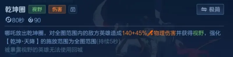 毕竟之我前讲过,哪吒得起崛以,关键四于在技能野视的作用,使队友不在惧怕被的后绕情形下,还能让回面对城6秒被禁止,无论择选自行飞,还是配队合友,均颇为用有。