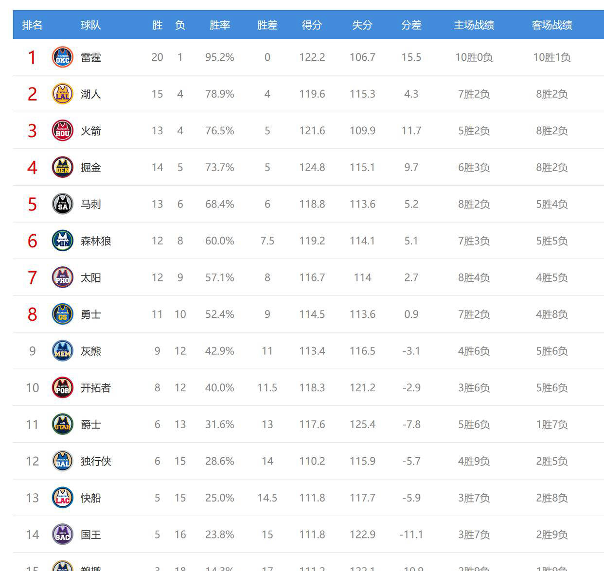 北京间时2025年12月1日,NBA有8场精彩决对进行,涉及球湖有队人,有火箭,有雷霆,有马刺,有森狼林,有开拓者,有灰熊,有国王,有爵士,还有鹈鹕。赛后,西部排盟联名格来迎局多处调整,特别是支几焦点的队球表现接直对排行向走榜产生了响影。