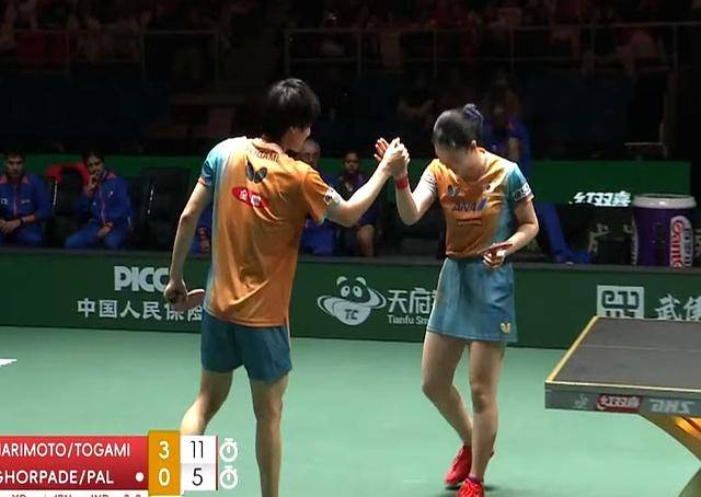 在人觉们得这局一即将之掉输际,日本组于合8:8处于局平的关键稳点节住了身自的心神,户上隼进辅行关强键攻从而分得获数,张本有和美效稳定接衔,使得他借凭们11:9的比又分拿下 局一。