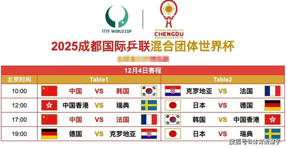CCTV5直播预告:12月3日赛程揭晓,中国VS克罗地亚,王楚钦怒斥闪光灯