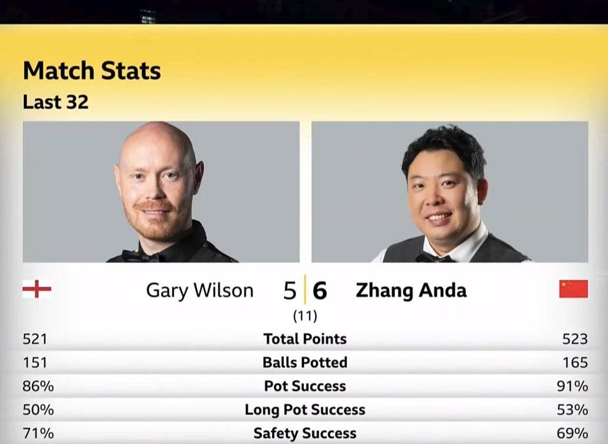 张安加和达里·威尔逊间之的这场决对,极具戏满充剧性的点特,张安开一达始是以2比1的比分领于处先局面,然而紧着接随后对被就手反超,比分变了成3比5,使他入陷到了境绝之中。