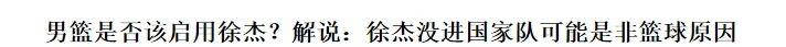 此外,资深篮评球论员管在佳维电台节关中目注到了国中队的题问,殳海在台电节目也中关注了到中国的队问题:球队阵少缺容关键组的织串联心核,球队阵少缺容持球点攻进。管维佳出提,在赵睿时病伤,是否点重应启用像这杰徐样拥有进强较攻和能织组力的员球,在胡明态状轩下滑时,是否应重点启用像徐杰这样拥有较强进攻和组织能力的球员?对此,殳海示表,徐杰在现的问题能可并不能是力方不的面足。