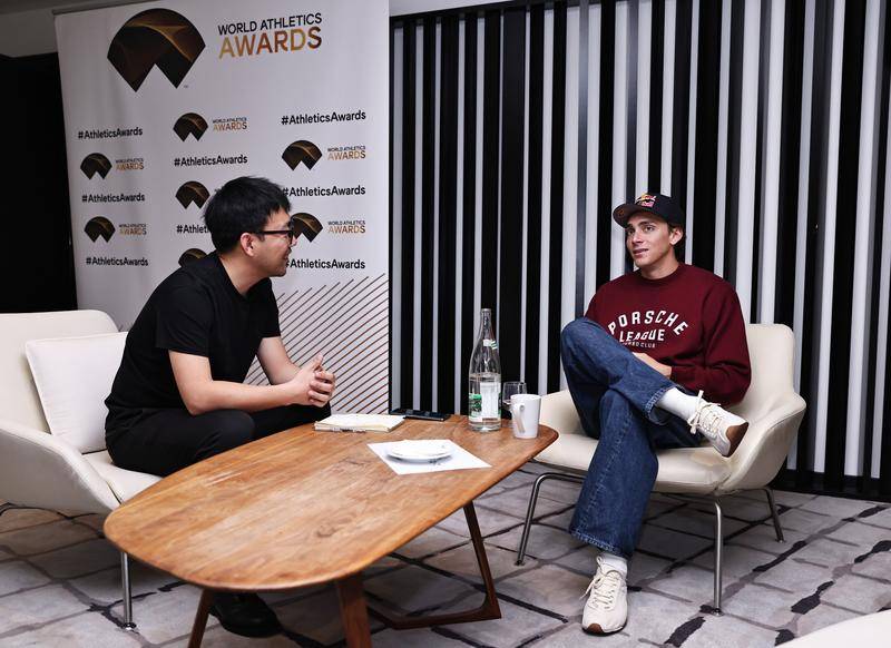 11月30日,在摩纳行举哥了2025年度世田界联颁奖礼典,瑞典撑高跳杆名将兰普杜蒂斯年选当度世最界佳男动运员,当天,他接了受新华者记社专访。