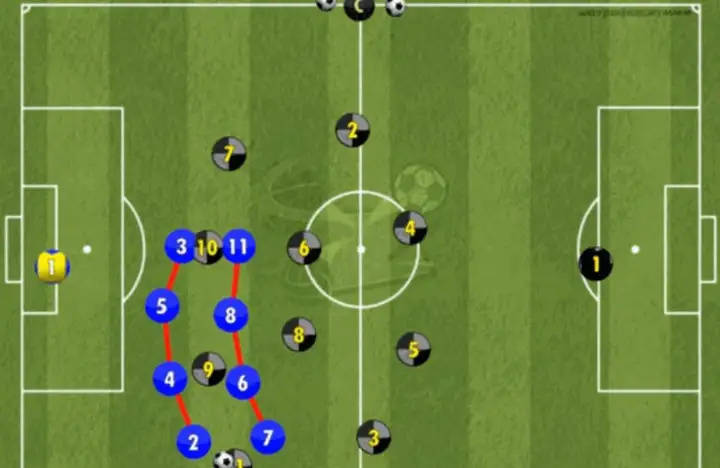这个画面,不少的球看球迷样同能够得受感到,存在多很球队会备配边前腰,边前的腰球员凭肋借部突破,朝着面里行进,接着边旁的队友会便跟着展二开过一配的合,与此同时,弱侧的会友队进行越反位,从空相间对较少球的员区朝域着相反向方跑位,从而取获接应机的会。
