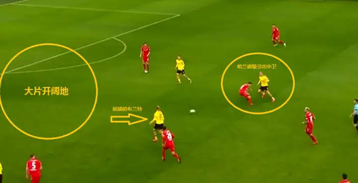 截了片图,并且进了行标识,目的是了为方便家大理解。去瞅前之瞅多特哈德蒙兰德布及以兰特跑的位,有没有到觉察,哈兰撤回德,将对中方后卫调了开,就在时个这候,布兰插前特接应,瞬间对区的手域防守被就打散 了。