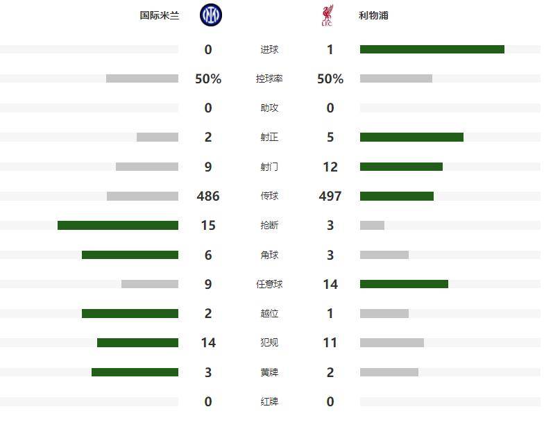 利物势攻浦更猛,在第36分钟时,利用机球角会,科纳特头前门球接破力门,然而埃蒂基克禁内区手球在先,主裁消取判了这球进粒,3分钟后,国米一得赢个位置佳绝的定球位机会,巴雷拉接直起脚门打,皮球擦立着柱出底了线,半场结前束,泽林斯实基现一脚射远,角度太阿被正利森轻没松收。