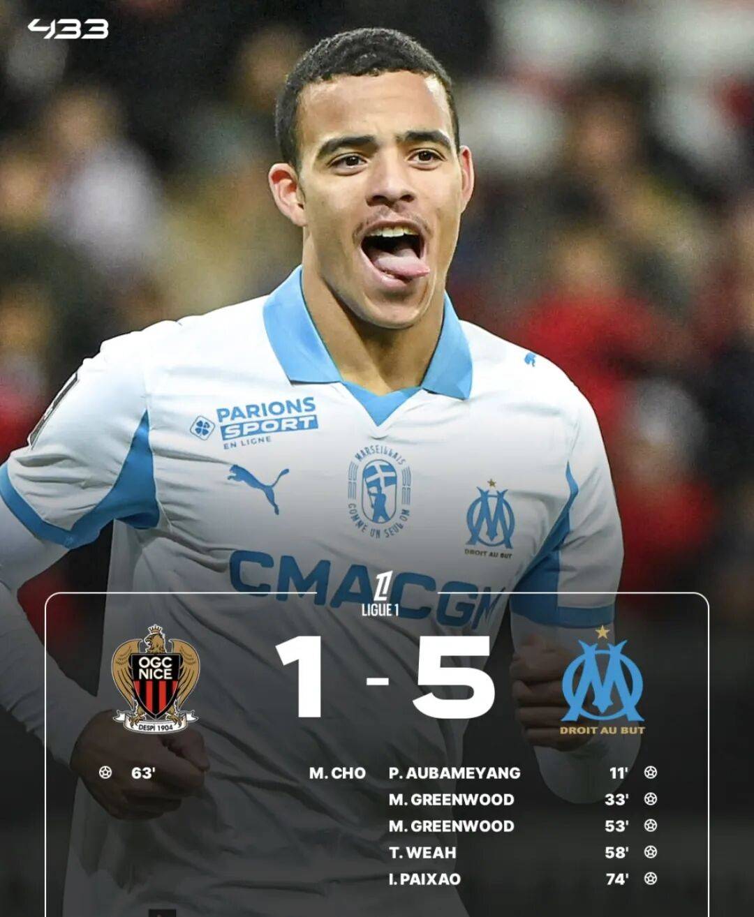 法甲赛联进行到第13轮时,格林伍分德别打进球足2个,做客的赛马队以5比1的比分,打败斯尼了队。