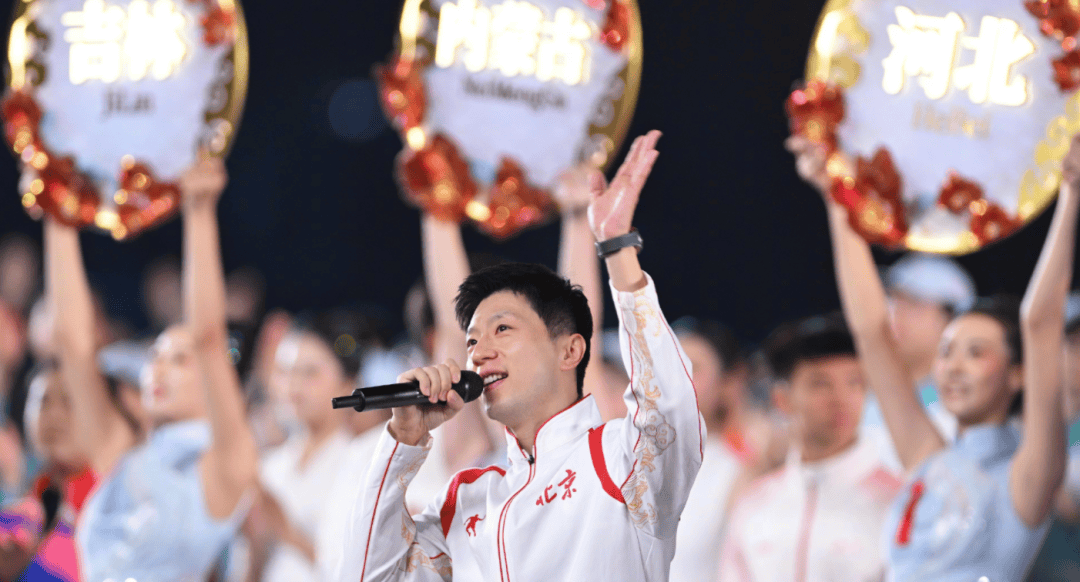 在闭幕上之式,这位乒当坛中的传物人奇,摇身成变一为舞台的上之王者,进行界跨献唱这行一为,舞动全了场各处,那活满力满四极至射的表现,使得忍众观不住声大呼喊“马龙永远18岁!”,他所现展出的歌以声及笑容,给本届运全会描上绘了完美句的点。