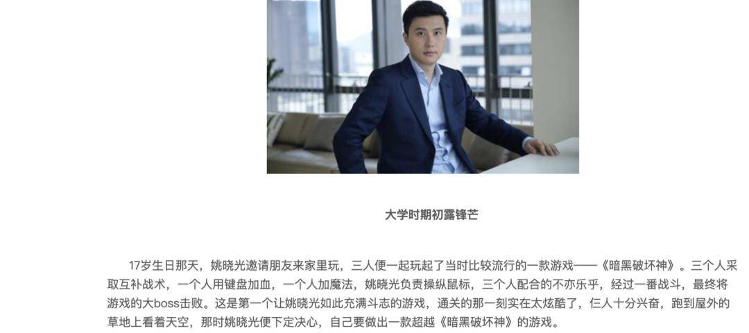 在大学的书念时候,姚晓用光“NPC6”当作自的己网名,在网络面上和一戏游群开发浓着有厚兴趣人的认识 了。