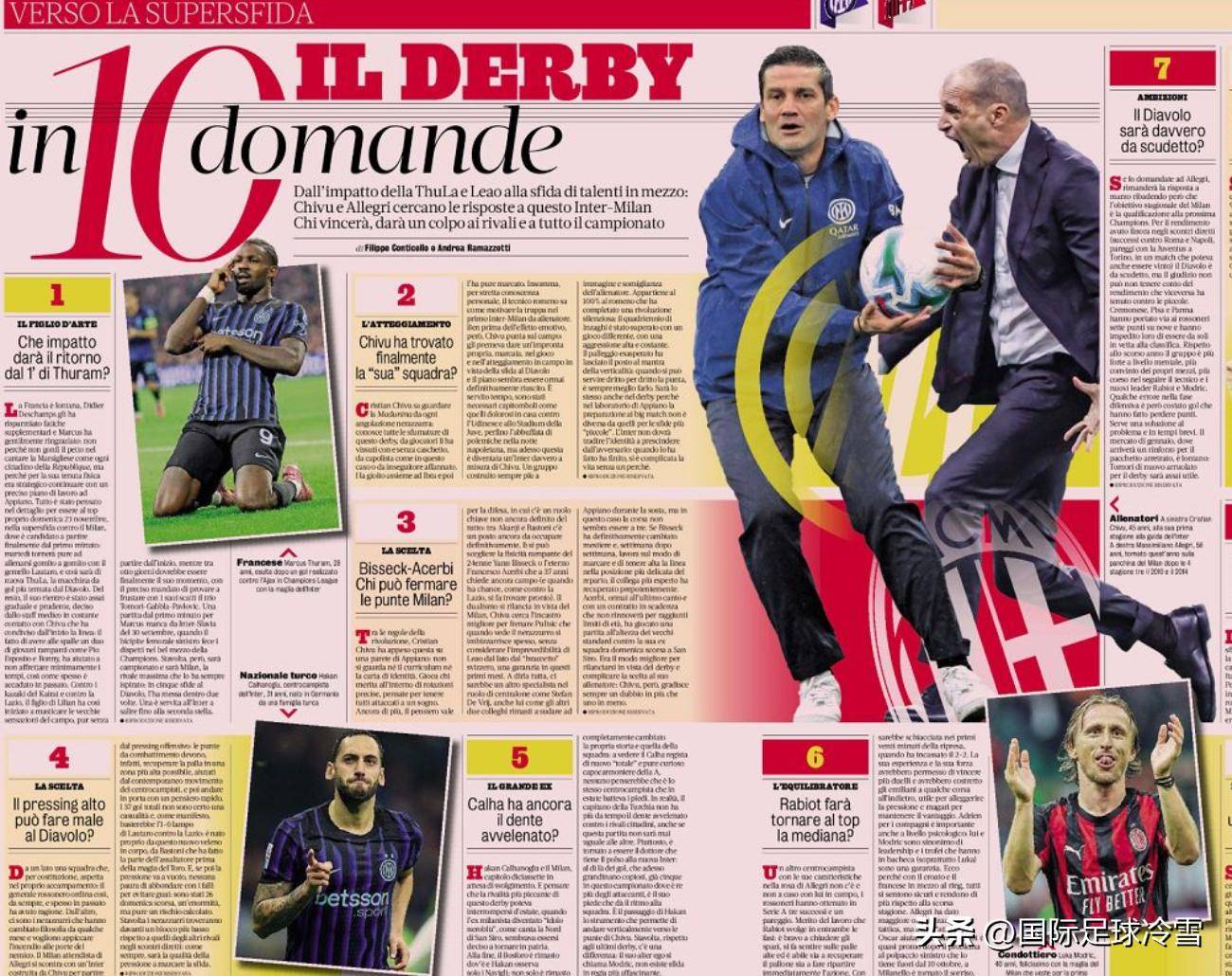 另外,《米兰体报育》表明,齐沃与格莱阿里这两人,在德之比前挑了选不一样战备的策略,齐沃的选所是“减压、放松”,而阿里格莱着重是的“严管、强力约束”。