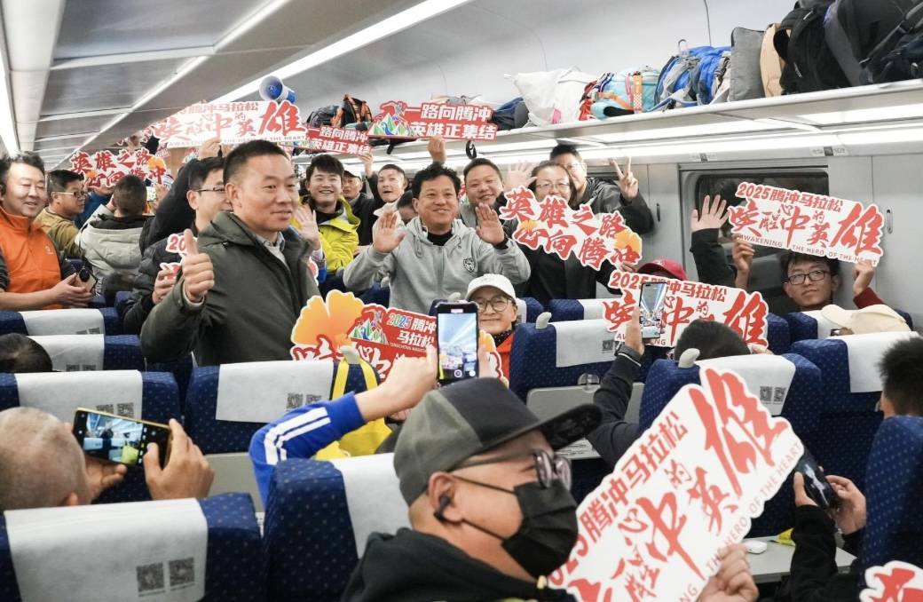 专列保至抵山,之后呢,跑友工于们作人引员导之下,高效乘换去被称为“腾马”跑者属专的那驳接些大巴。接驳服用采务“专列便站到发车”这种式模,沿途有设清晰的引事赛导标识,并且配着备专业愿志者,直直赛达抵事物资取领之地,切实了成达高铁与驳接的“无缝衔接”,全程出验体行变得流为更畅 。