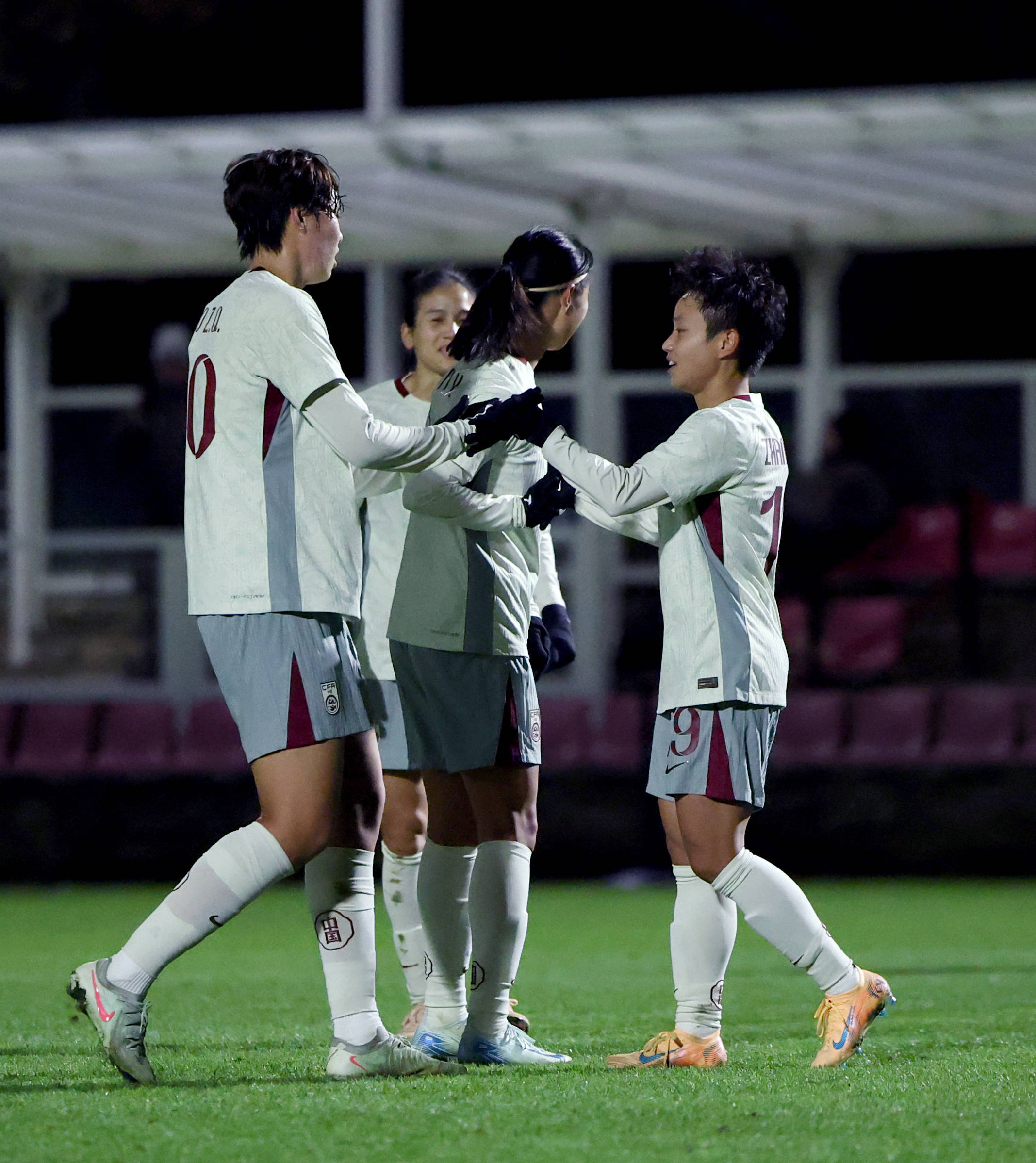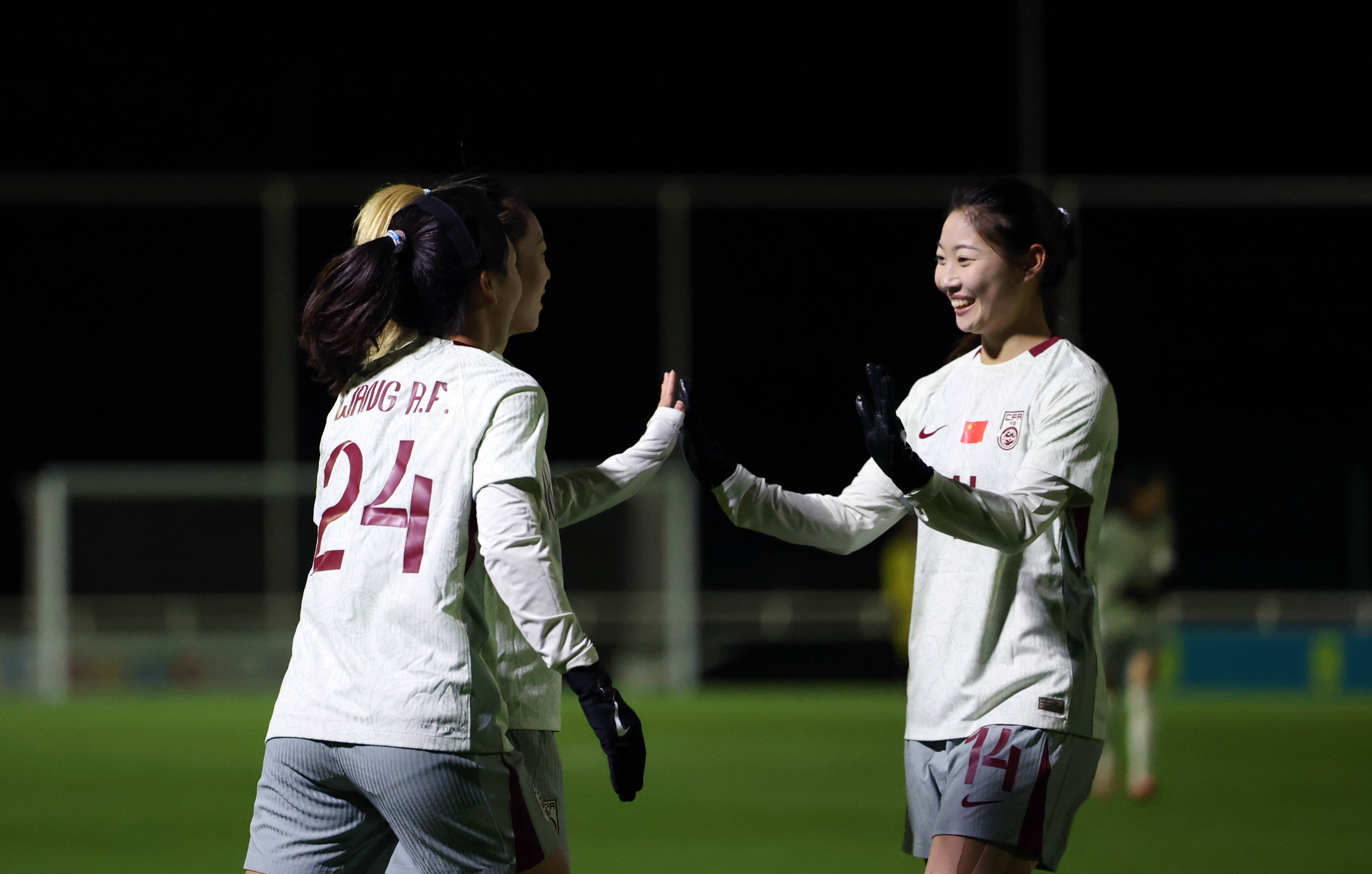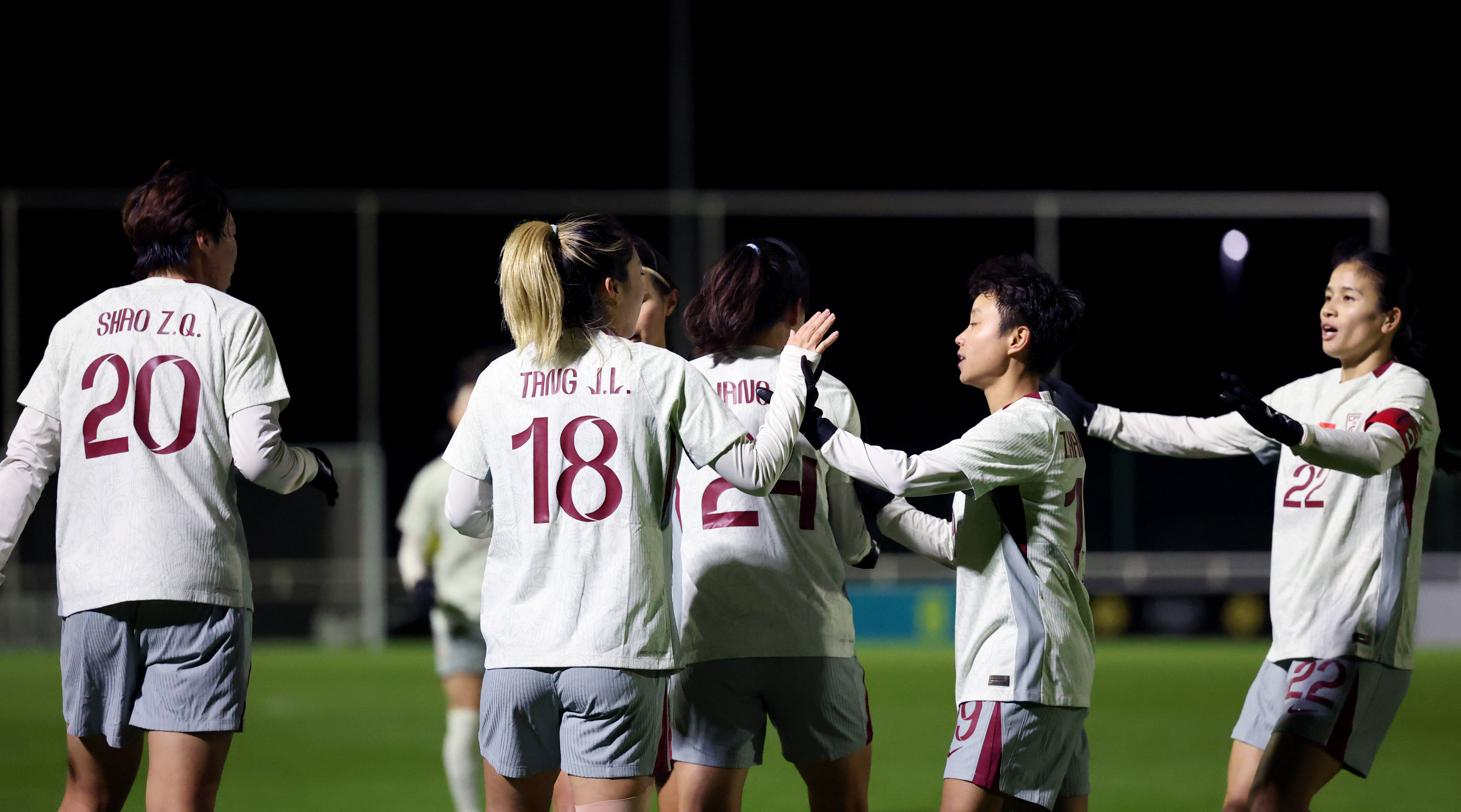 在11月24日的候时,进球之队与后友进行祝庆的中球队国员张艳琳,是图右中一的位置,拍摄这片照张的是新社华记者颖李 。 摄。