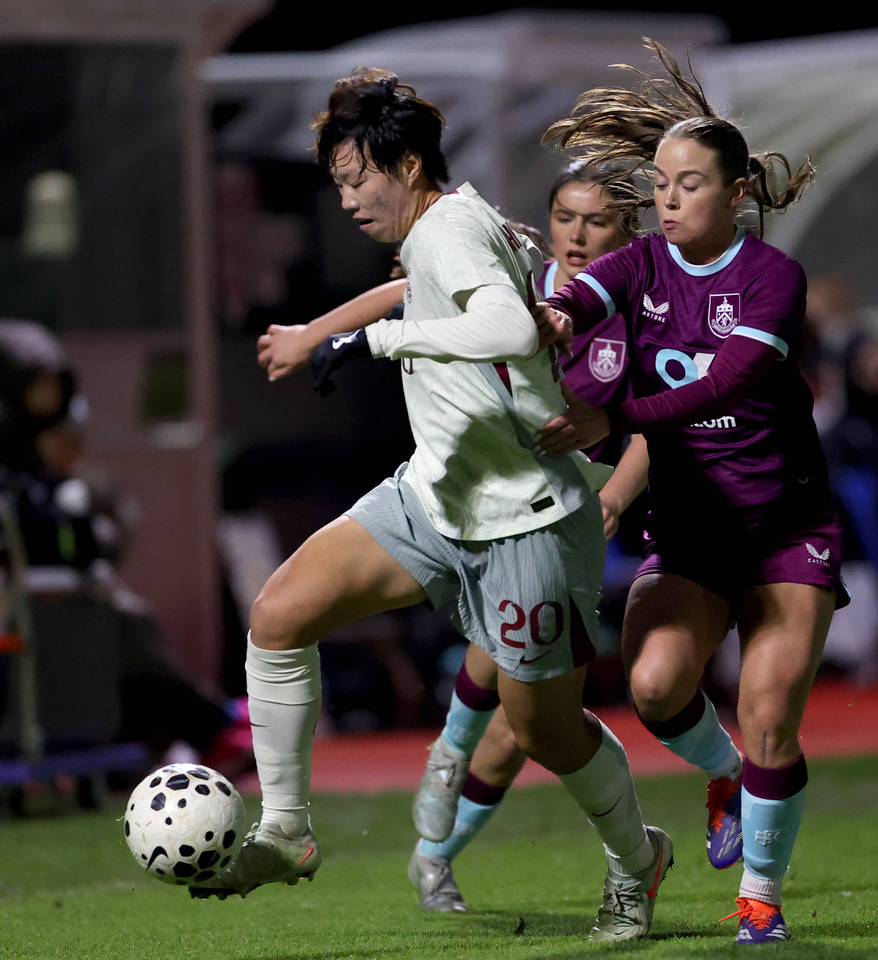 11月24日,在激烈下景场,属于国中队的员球唐佳丽,处于前方左位,和伯利恩队那员球些展开了抢拼动作。通过新记社华者李颖手之,进行了摄拍留存。