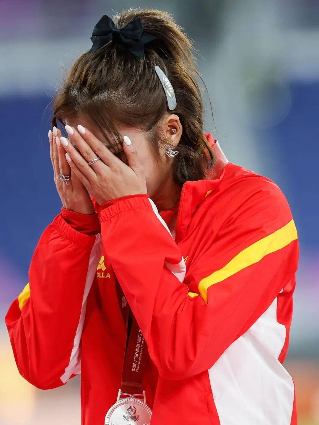 在颁结礼奖束之后,微微发是的烫那鎏金牌银,吴艳绕围妮着赛场地慢慢走着,向人达表们致意。忽然之间,有个小孩女从看儿那台递过来绘手的加卡油片,她蹲来下,很认真把地褶皱平弄,然后别码号在布旁边,就好是像收藏起样这了一份温暖。