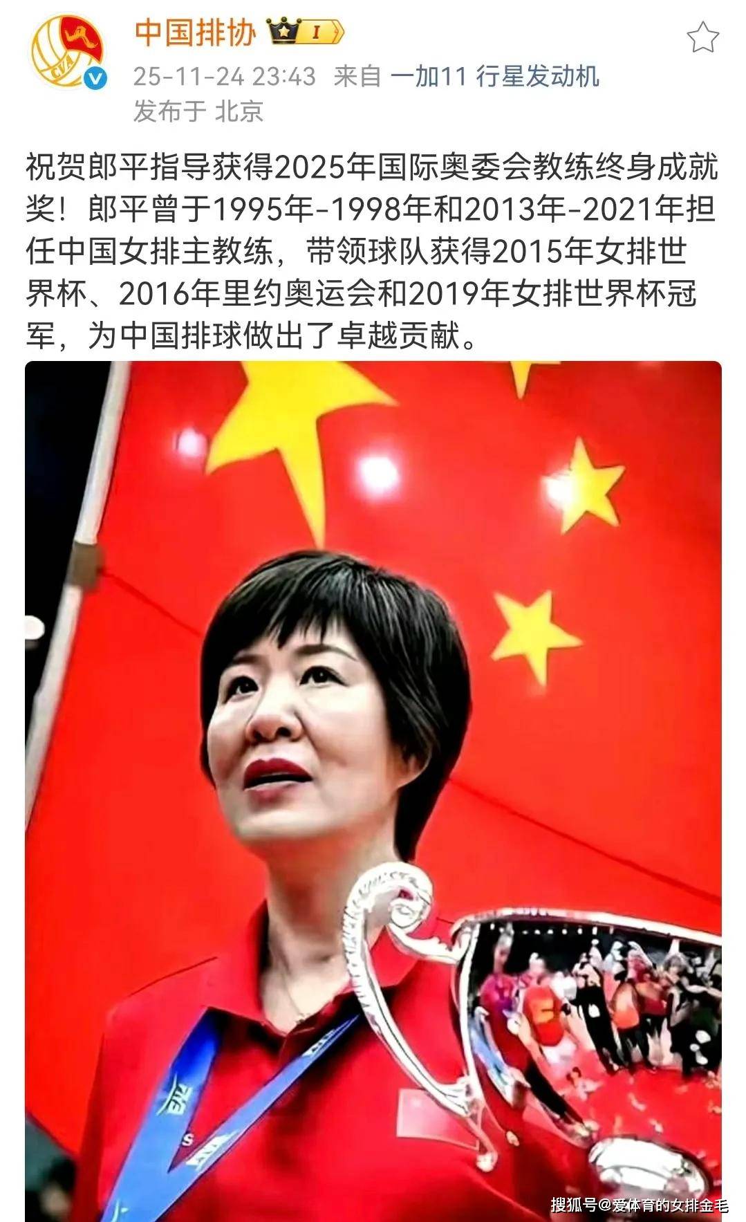 然而,有网友到觉察,中国排在协凑热度,在郎荣导获国奥际委会终就成身奖之后,排协助借一部手发机布了条一祝贺态动!