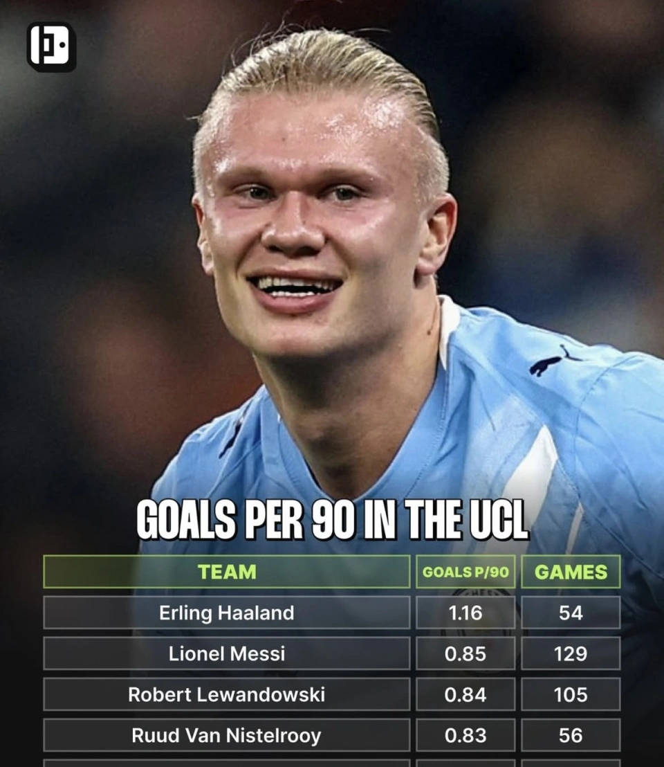 近几日,有一备具家权威的性足球据数媒体,发布了新最的欧冠进均场球效的率榜单,该榜聚汇单了哈德兰、梅西、莱万夫多斯基欧些这洲顶锋前级的惊表人现 ,榜单数表据明,年仅25岁的挪神威锋哈兰德,以每90分钟1.16球的高超效率稳首榜居,大幅领包于先含梅C和西罗在内奇传的球星,这一令据数人不禁生心期待,他未会来被推种何向巅峰。