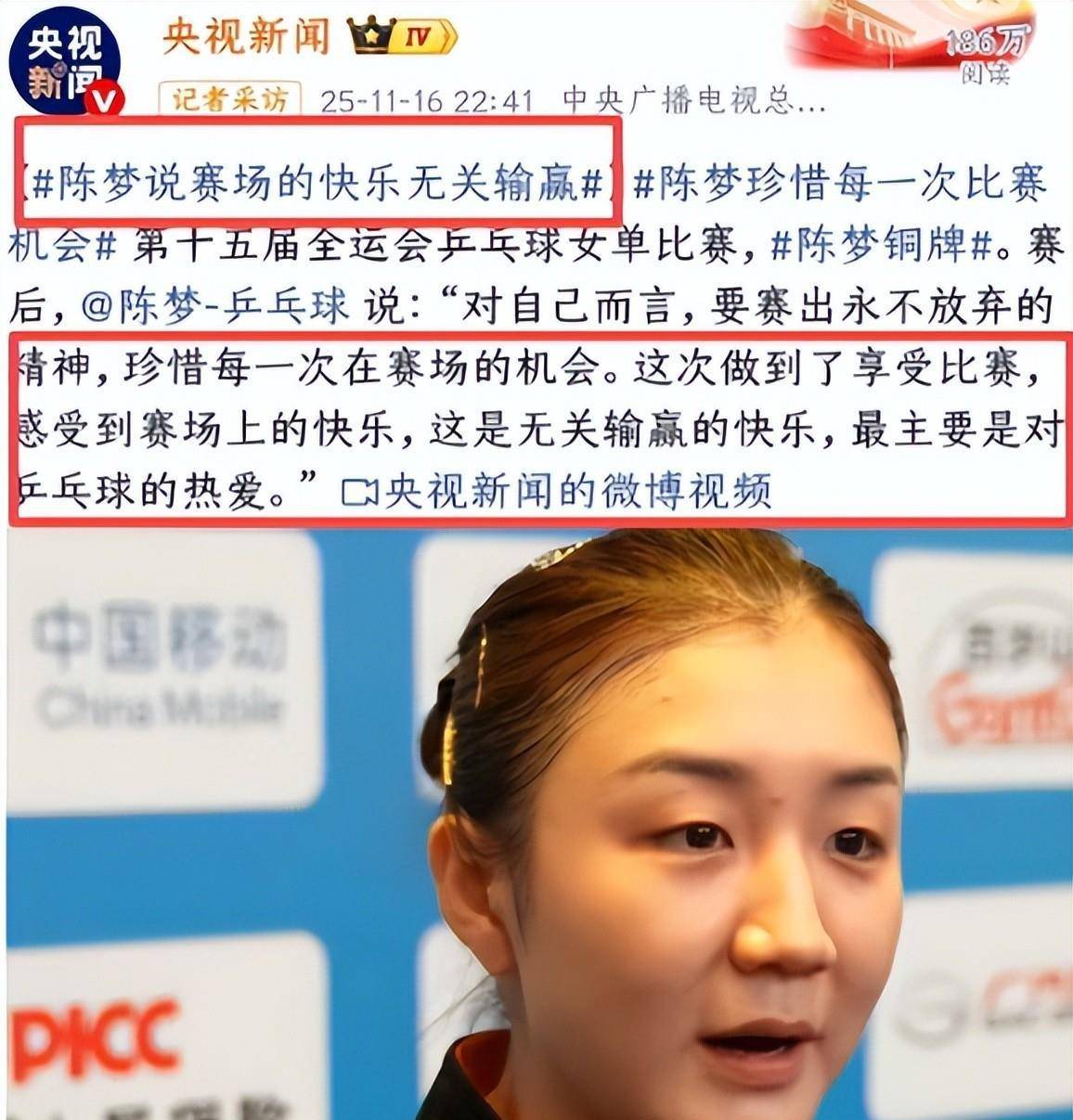 11月16日,在铜牌夺争战中,陈梦与雨朱玲展对开决。