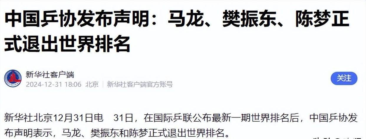 中国乒界球乓的多位贯满大选手集退体出了界世排名单榜。