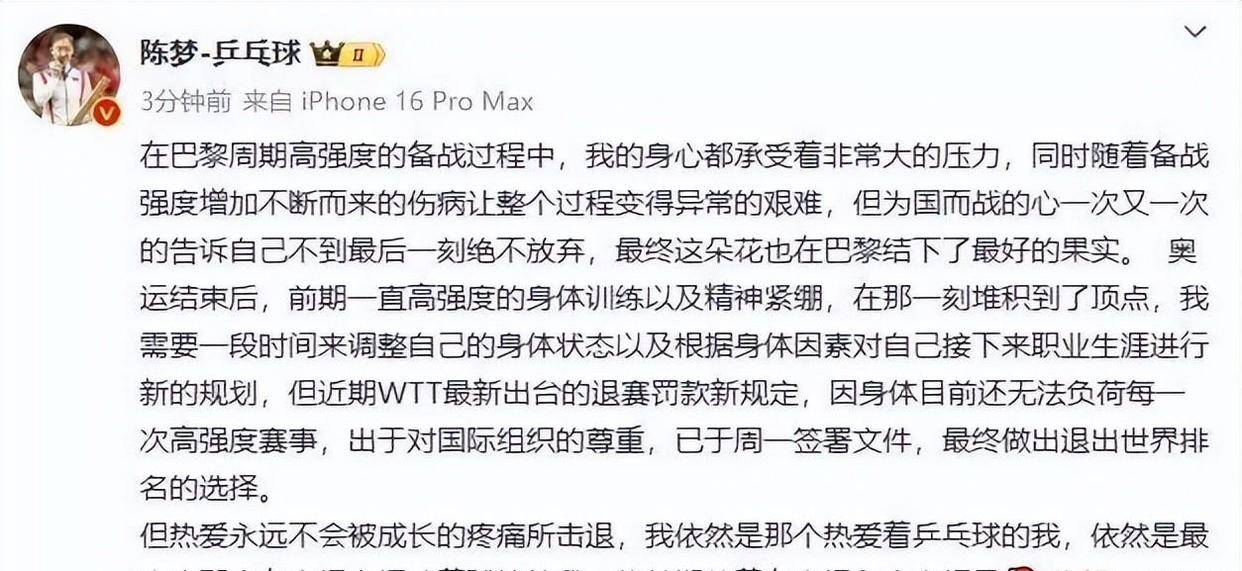 然而,这份并爱热不会长成因所带来苦痛的而产动生摇,我仍那是旧个对球乓乒满怀热的爱自身,仍是个那最钟情赛在于场上挥拍球舞的我,并且期旧依盼着同于家大比赛度再里相逢。